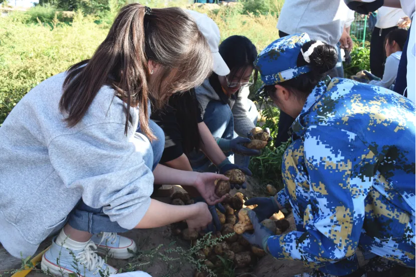 双手握住土豆的根系,用力拔出时带出的不仅有沾着泥土的土豆还有收获果实的踏实感。与超市冰冷的商品不同,这是土地在雨水与阳光的滋润下孕育的带有温度的果实。弯腰,挖掘,分拣,看似简单的动作重复多次后也体会到了背后的辛苦。但当自己亲手挖的土豆被煮熟后,所有的辛苦都在舌尖混合着土豆的清甜一同消散。