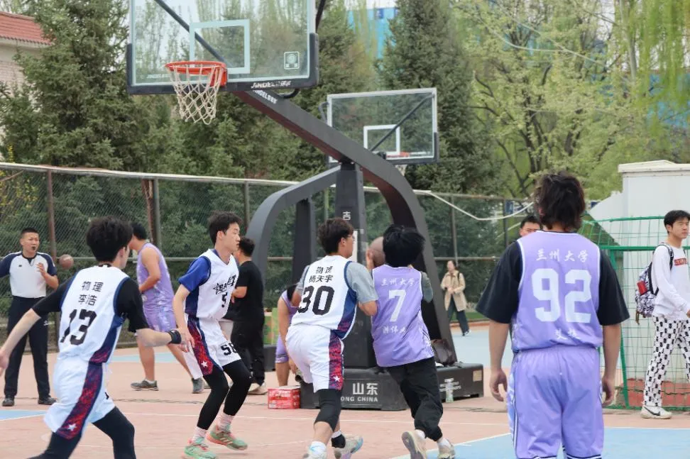 4月23日,哲社男篮对阵物理男篮,面对鲜有交手的传统强队,哲社男篮怀揣着创造奇迹的决心。开局双方均手感不佳,第一节结束哲社男篮落后4分,第二节开始,洪伟业屡屡快攻,康兴一记底角三分提振士气,对方56号姜开瑜屡屡用盖帽保护内线,分差缩小到一分。