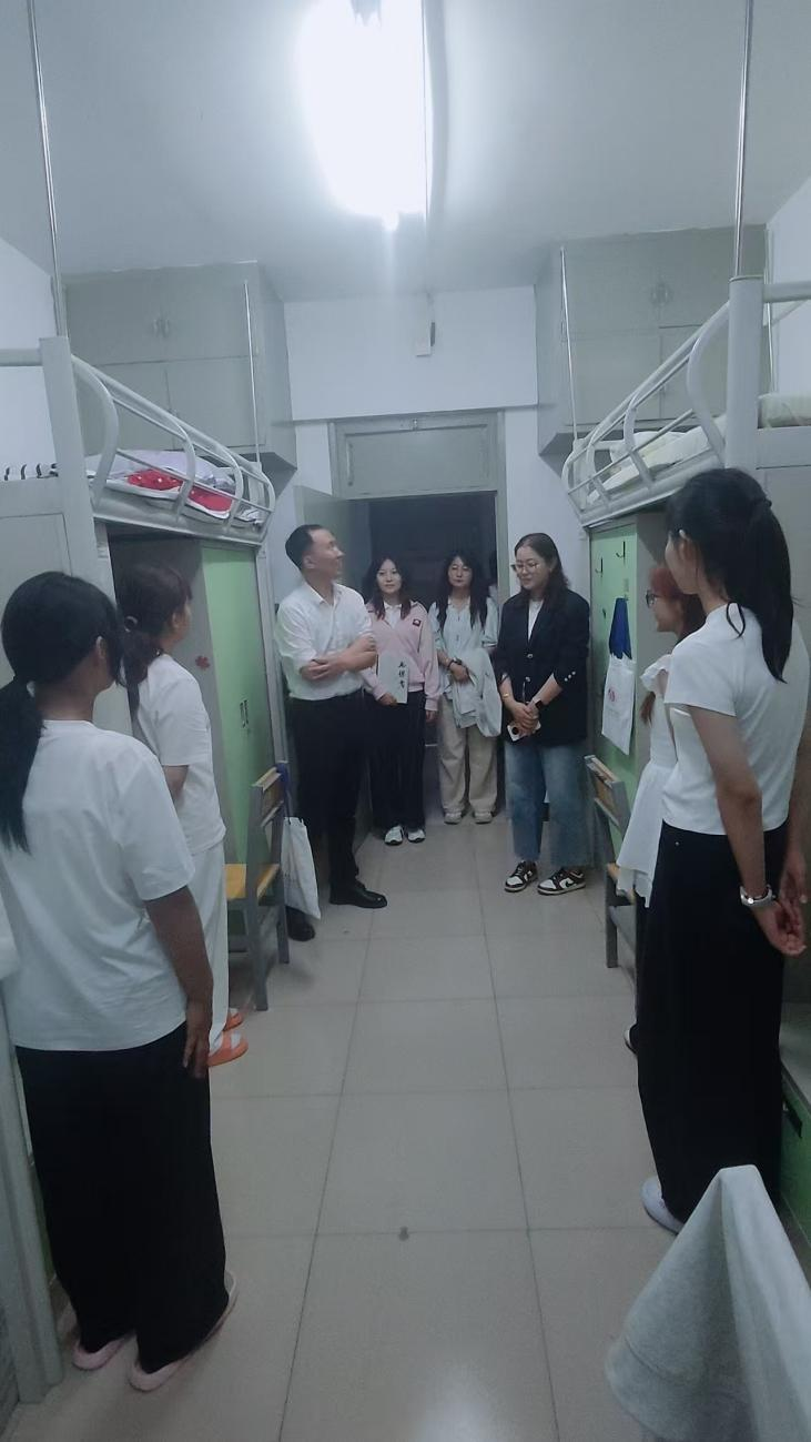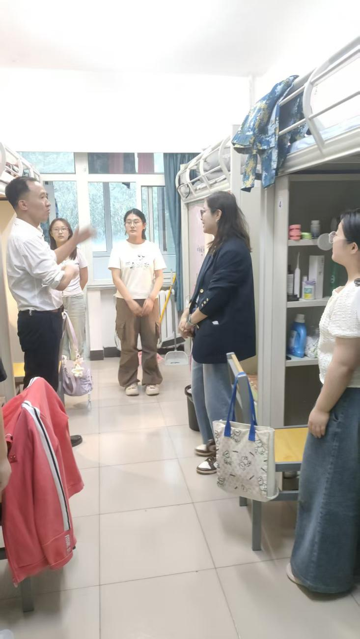 走访中,学院领导特别指出大学与高中阶段在学习方式、生活节奏上的差异,鼓励同学们主动调整心态,尽快适应大学自主学习的模式,积极投入集体生活,多参与学术讲座、社团活动与社会实践,全面提升自身能力。老师们也叮嘱同学们保持规律作息,重视宿舍安全与卫生,定期打扫整理,共同营造和谐有序的生活环境,自觉遵守校纪校规。