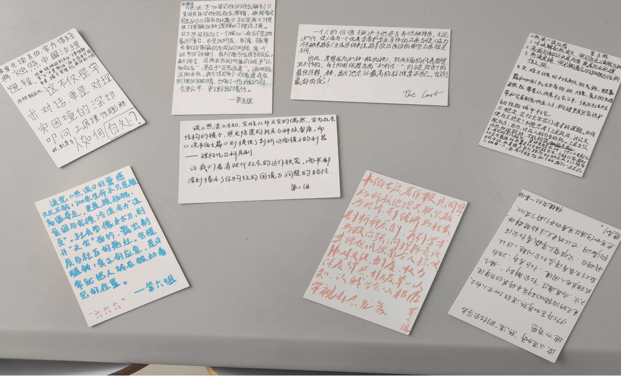 在赵慧的组织下,“热浪明信片”专题读书研讨会顺利开展。活动现场,八个小组依次分享阅读思考,讨论从“孤独死”现象深入至“社区韧性”“城市治理”等结构性议题,气氛热烈。各组将讨论共识凝练成文,书写成系列“热浪明信片”札记。此次活动不仅显著增强了班级凝聚力,更推动同学们对社会议题的理解从现象层面提升至结构分析,使经典阅读通过具象化表达深深融入专业成长与青春记忆。