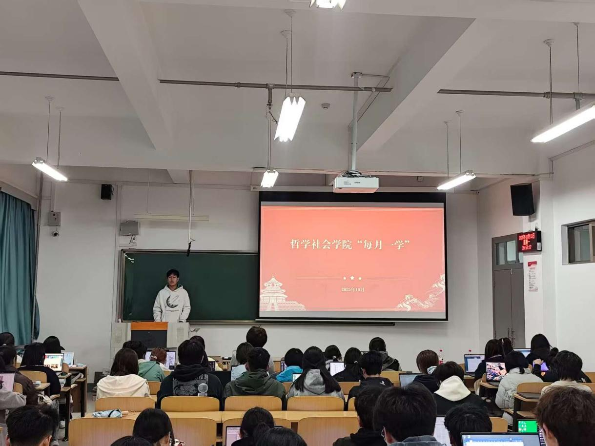 为深刻领会习近平总书记在纪念中国人民抗日战争暨世界反法西斯战争胜利80周年大会上的重要讲话精神,哲学社会学院学生会积极响应校团委号召,于10月15日在榆中校区开展了“每月一学”专题学习活动,引导青年学子从伟大抗战精神中感悟思想伟力、铭记历史、明确使命。
