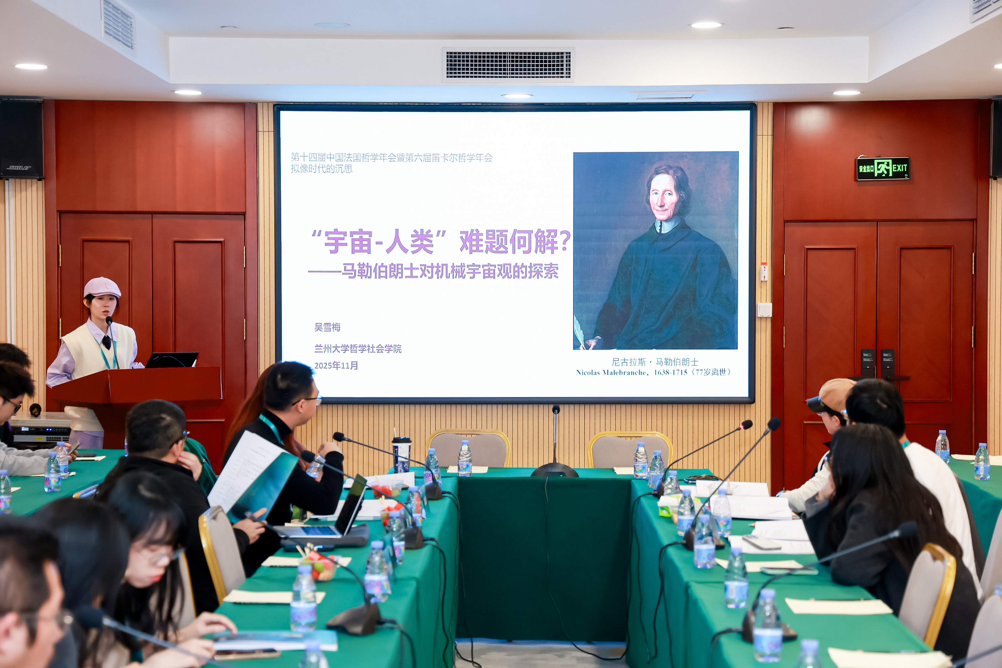 近日,第十四届中国法国哲学年会暨第六届笛卡尔哲学年会于2025年11月21日-23日在北京西郊宾馆(清华大学附近)成功举办。我院教师吴雪梅博士受邀出席此次会议,并在会上进行报告,展示了其在法国哲学方向的研究成果,与众多专家学者共同探讨笛卡尔哲学前沿话题,为法国哲学相关议题的研究贡献了智慧与力量。