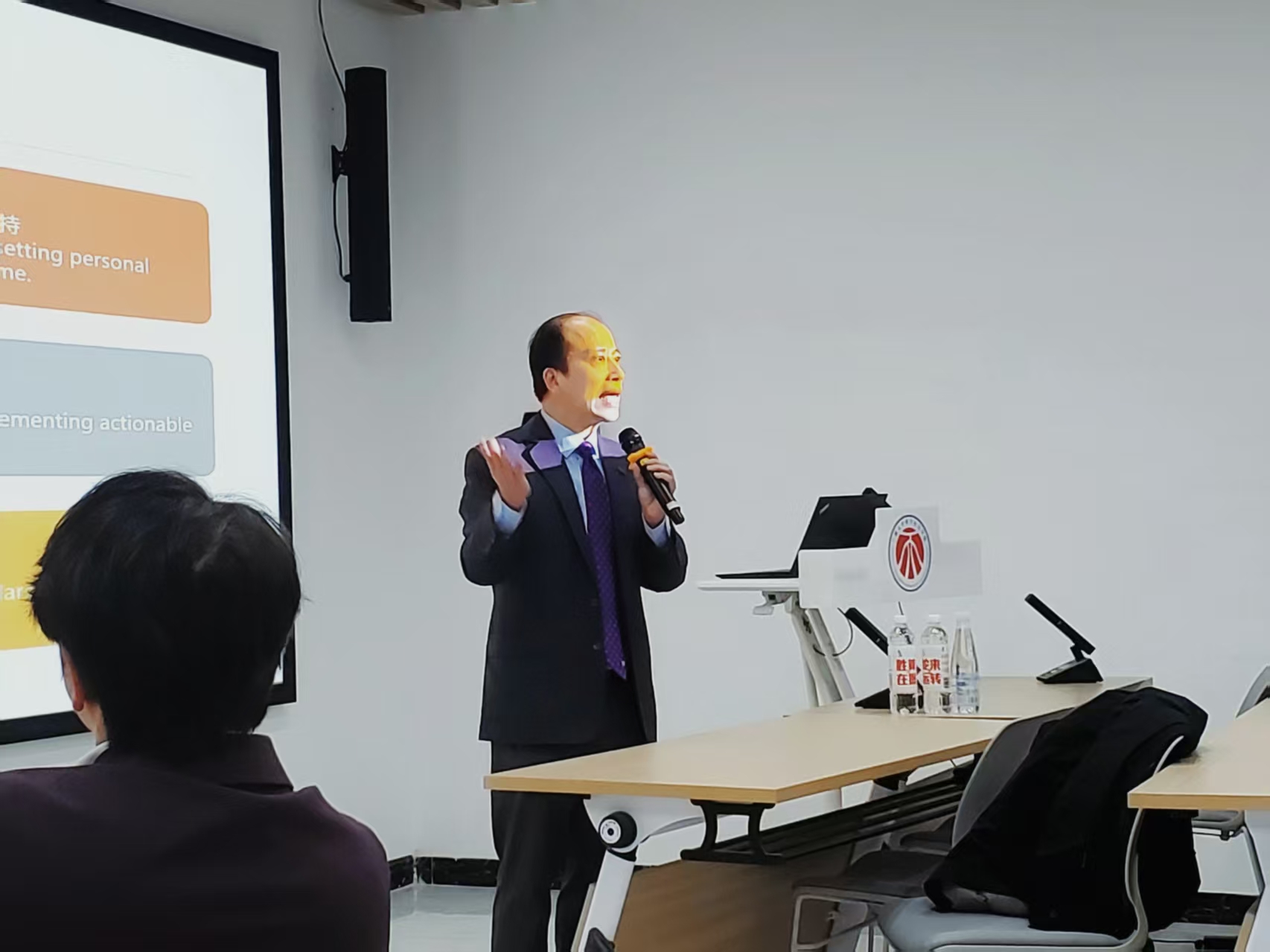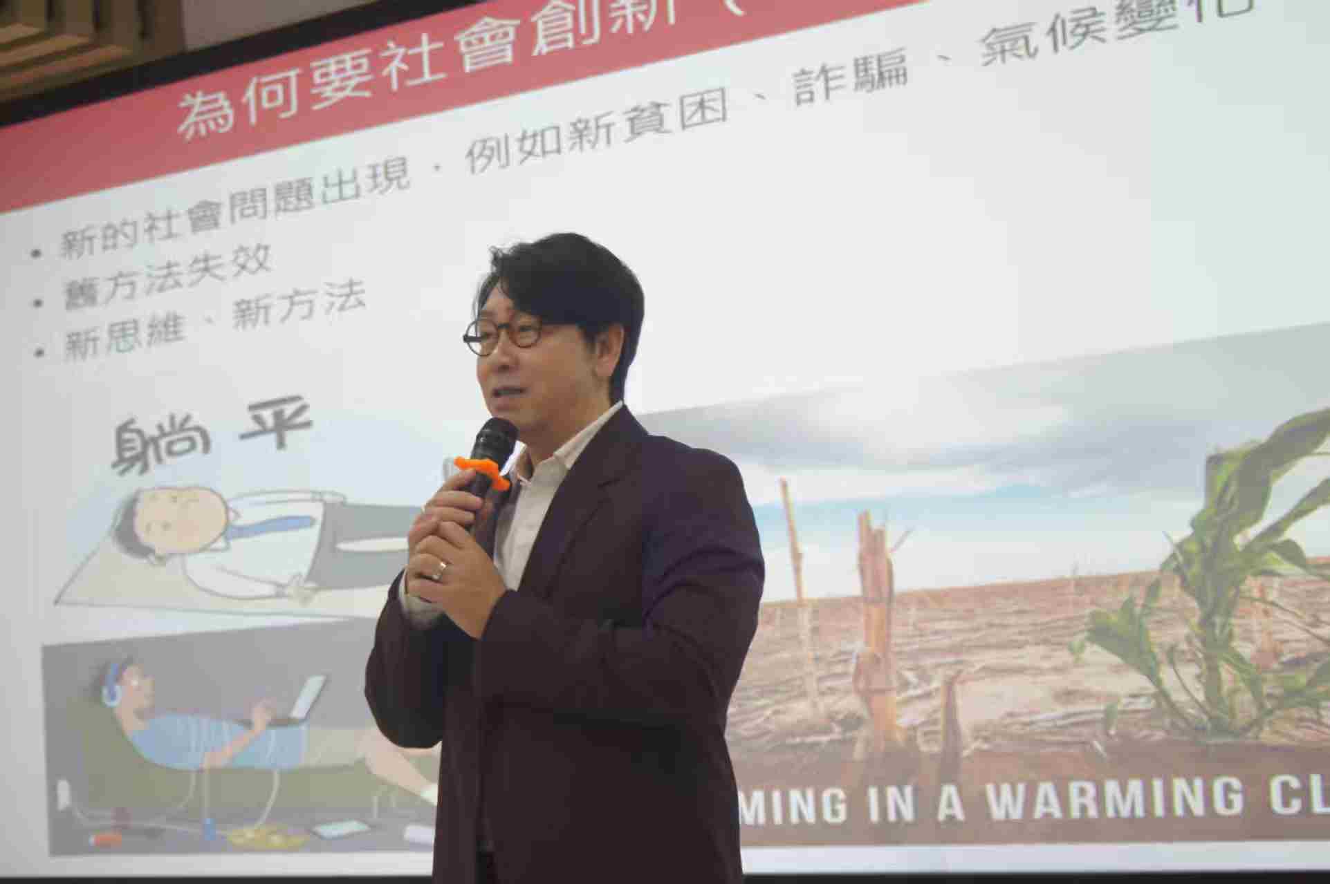 古学斌从“为何要推动社会创新”切入,引导师生深入思考。他谈到,当前新贫困、网络成瘾等新社会问题不断涌现,传统解决方法已难以适应需求,亟需新思维、新方法。随后,他阐释了社会创新的定义及五大支柱,并结合自然学校、新型药盒、快乐之友APP等案例,展示了社会创新的最新成果。